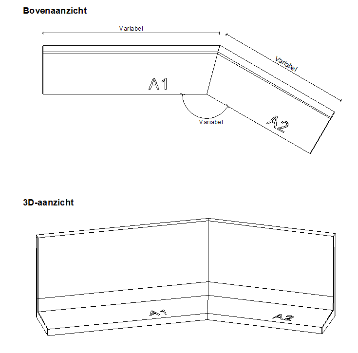 Indien u graag een afschuining wenst of een afschuining die over meerdere elementen doorloopt kunnen wij een afschuining op maat realiseren.