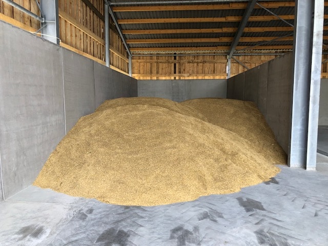 À la scierie Rondhoutzagerij Midden Nederland à Uddel, des murs de soutènement Bosch Beton de 6,30 mètres de haut ont été érigés pour le stockage de la sciure, des copeaux de bois et des pellets sur le site