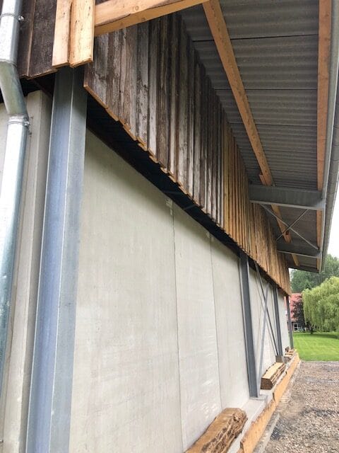 Nous avons livré et monté les murs extérieurs (LA300S) et les murs de séparation (TWA300) de 3 mètres de haut en une seule journée. Nous avons tout préparé à l’usine d’avance de sorte à pouvoir placer les murs de soutènement directement sur place. Même vers le mur de fond, où nous avions une faible hauteur de travail avec la grue, tout était parfaitement adapté. La halle dispose de trois séchoirs au total. Le système de séchage a été installé dans le sol à côté des murs de soutènement.
